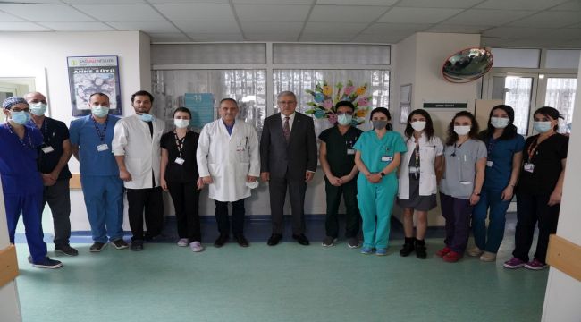 EÜ Rektörü Prof. Dr. Necdet Budak, başarılı bir ameliyata imza atan Doç. Dr. Dökümcü ve ekibini ziyaret etti. Ekibi tebrik eden Rektör Budak, “Ege Üniversitesi Tıp Fakültesi Hastanemiz sadece Türkiye’de A Plus hastane değil, uluslararası arenada da artık tam anlamıyla bir marka haline geldi. Burada da Meryem kızımız, Cezayir’den hastanemize gelmiş durumda. Fransa çok yakın olmasına rağmen Çocuk Cerrahisindeki Zafer Dökümcü hocamız ve ekibi için Cezayir’den Ege Üniversitesi Tıp Fakültesi Hastanemize geldiler. Yemek borusuyla ilgili operasyon yapıldı ve şu anda Meryem sağlığına kavuşmuş durumda. Bu aslında hastanemizin, cerrahlarımızın, hocalarımızın sağlık turizmi anlamında da uluslararası arenada tam anlamıyla bir marka olduğunu gösteriyor. Hocamızı ve ekibini kutluyorum. Kızımıza da Allah’tan şifa diliyorum. Yalnızca bölgemiz ve ülkemiz için değil uluslararası arenada da bu sağlık hizmetlerini vermeye devam edeceğiz” dedi.